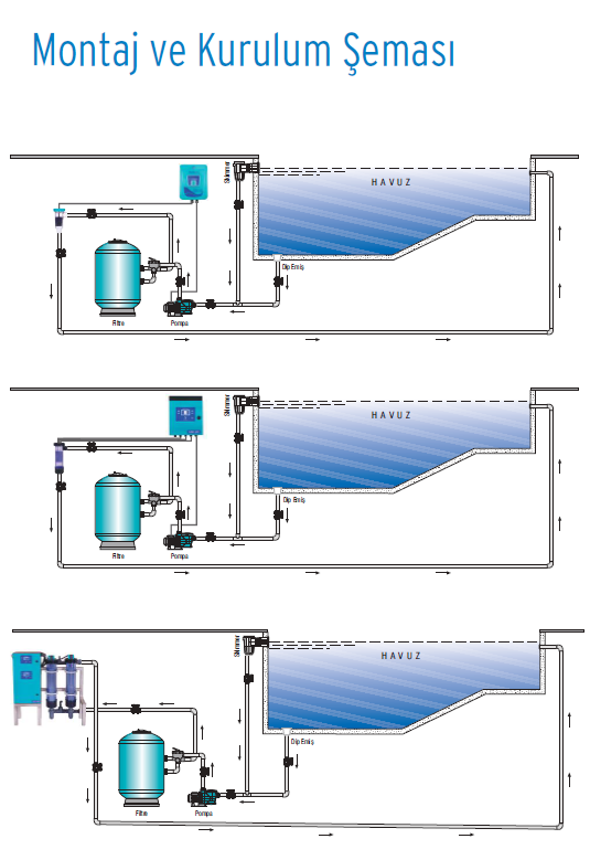 Yüzme havuzu suyu arıtma ve filtreleme sistemleri bu tip su dezenfektanlarını kullanmak için hazırlanmıştır.