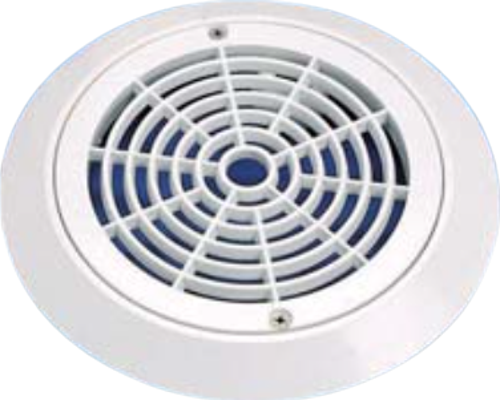 Beyaz ABS’den mamul. Çerçevenin zemine montajı için gerekli paslanmaz çelik vidaları ile komple. iç çerçeve Ø 186 mm. Dış çerçeve Ø 242 mm.