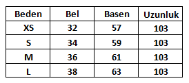 Ürün Beden Tablosu :