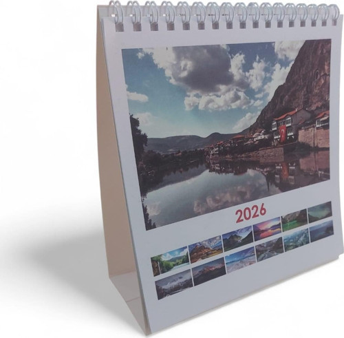 Genç Dijital Baskı tarafından üretilen bu masa takvimi, her ay için farklı bir manzara sunarak çalışma alanınıza estetik bir dokunuş katıyor.