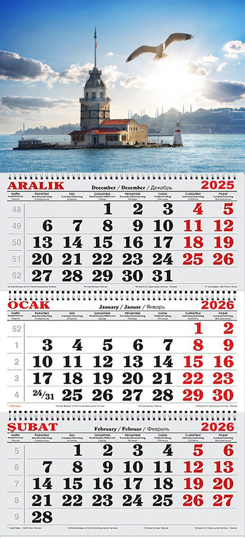 Genç Dijital Baskı tarafından sunulan bu özel gemici takvimi, 2026 yılı için tasarlanmıştır. Takvim, Kız Kulesi ve martı temasıyla dikkat çekici bir görsellik sunar. Deniz tutkunları ve İstanbul hayranları için ideal bir seçimdir. Her ayın sayfasında farklı bir deniz manzarası ve İstanbul'un simgelerinden biri olan Kız Kulesi'nin eşsiz görüntüsü yer alır.