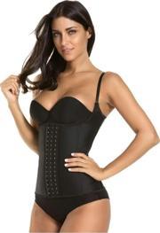 Genç Plus Kadın Siyah Latex Korse Askılı Celik Balenli 3 Kademeli Agraflı Sekillendirici Lateks Bel Korsesi