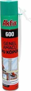 Akfix 600, havadaki nem ile kürleşen ve genleşen tek komponentli aerosol poliüretan köpüktür. Özellikler Kapı ve pencere kasalarının montajında ve izolasyonunda.