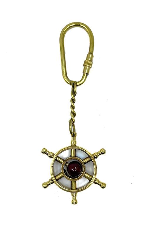Marin Tasarım Pirinç Anahtarlık - Gemi Dümeni Figürlü Hediyelik Eşya