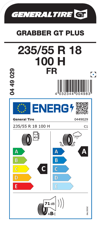 General Grabber GT+ 235/55R18 100H FR, özellikle SUV ve crossover araçlar için tasarlanmış yüksek performanslı bir yaz lastiğidir. Sağlam yapısı ve geniş tabanı sayesinde yaz aylarında güvenli ve konforlu sürüş sunar. H hız endeksi (210 km/saate kadar) ile şehir içi ve uzun yol sürüşlerinde güvenliği garanti eder.