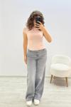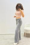 Mihrim Butik Geniş Paça Gri Jean Pantolon ile gardırobunuzda şıklık ve konforu bir arada bulacaksınız.