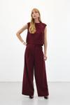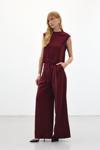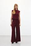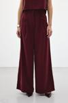 Sateen markasının şıklığı ve rahatlığı bir araya getiren geniş paça pantolonu, bordo rengiyle dikkat çekiyor.