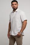 Geniş Ve Rahat (Bol) Kesim Cepli Armürlü Klasik Kısa Kol Erkek Gömlek