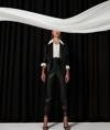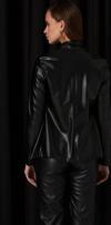 Asimetrik kesim, salaş, geniş yaka deri ceket.
