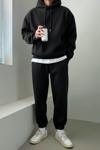 Kapüşonlu sweatshirt ve jogger eşofman altından oluşan bu takım, modern kesimi ve zamansız renkleri ile günlük giyim, spor veya evde rahatlık arayanlar için tasarlandı. Takım halinde giyildiğinde kusursuz bir uyum sağlar. Neden Üç İplik Şardonlu Kumaş? Mükemmel Isı Yalıtımı: Kalın ve iç yüzeyi yünlü yapısı sayesinde vücut ısınızı hapseder, soğuk kış günlerinde bile maksimum sıcaklık sağlar. Dayanıklı Yapı: Üç iplik örgü tekniği, kumaşa yüksek dayanıklılık katarak uzun ömürlü kullanım sunar. Yumuşak Dokunuş: İç kısmı tüylü olduğu için cildinize karşı inanılmaz yumuşak ve konforludur. Takım Parçalarının Özellikleri: 1. Oversize Kapüşonlu Sweatshirt: Trend Oversize Kalıp: Rahat ve bol kesimi, güncel sokak modasının ruhunu yansıtır. Kapüşon ve İp Detayı: Ekstra koruma ve şık bir görünüm sunar. Kanguru Cep: El ısıtmak ve pratik eşya taşımak için idealdir. 2. Jogger Eşofman Altı: Modern Jogger Kesim: Bilekte lastikli paça, ayakkabılarınızla mükemmel bir uyum sağlar. Özel Dikiş Detayları: Bacak boyunca uzanan dikey dikiş çizgisi, sportif ve şık bir silüet yaratır. Ayarlanabilir Bel: İpli ve elastik bel bandı tam oturma sağlar. Genıus Store kalitesi ve garantisiyle, gardırobunuzun en şık ve kullanışlı parçasına sahip olun!
