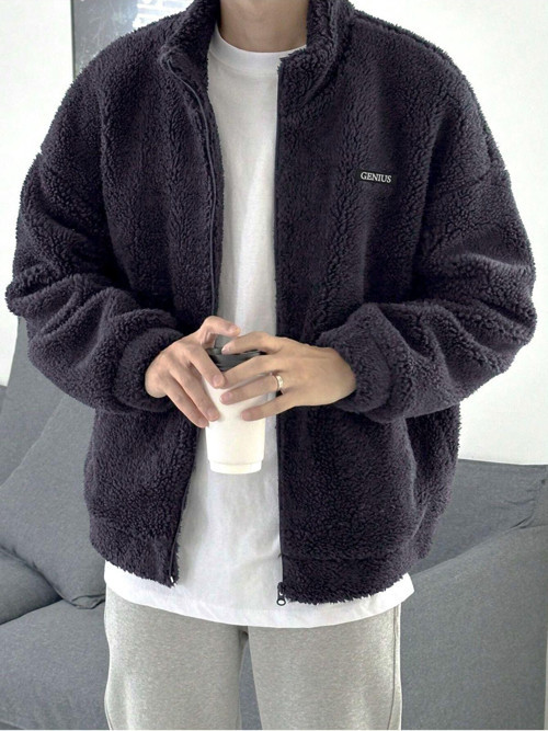 Genius Store Oversize Peluş Tam Fermuarlı Sweatshirt Peluş İçi Polarlı Sherpa Kumaş Sweatshirt Füme 2Xl