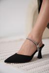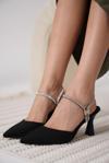 Georgina Kadın Taşlı Siyah Saten Topuklu Ayakkabı