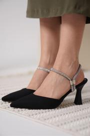 Georgina Kadın Taşlı Siyah Saten Topuklu Ayakkabı