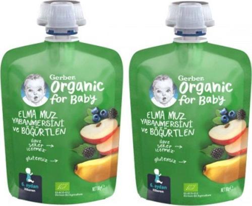 Gerber Organik Muzlu Yabanmersinli Böğürtlenli Elma Püresi 90g x 2