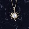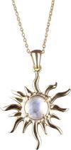Gerçek doğal ay taşı taşından yapılmış bu muhteşem el yapımı kolyenin güzelliğini keşfedin. Kolye, altın kaplama bir güneş şekilli pendant ile şık bir şekilde tasarlanmıştır. Bu kolye, takı koleksiyonunda lüks ve anlam arayanlar için mükemmel bir seçenektir.