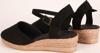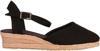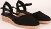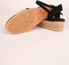 Star Tombis Gerçek Elişi Topuğu Açık Bilekten Bantlı 3cm Dolgu Topuk Siyah Keten Hasır Espadril Handmade