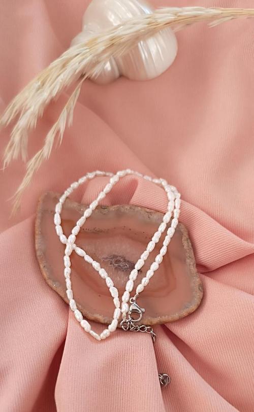 Gerçek İnci Arpa Kesim 316L Çelik Zincir Ayarlamalı Doğaltaş İstiridye Kolye