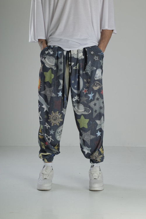 Gezegen Detaylı Pileli Bürümcük Şalvar