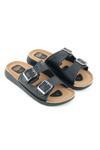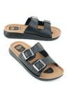 Gezer Kadın Yazlık PU Alt Taban Suni Deri İki Toka Ayarlanabilir İç Taban Anatomical Dört Nokta Yastıklı Rahat Günlük Terlik