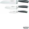 GGS Interline Santoku Kochmesser 3'lü Bıçak Seti ile Mutfakta Mükemmellik! Alman mühendisliğinin en iyi örneklerinden biri olan GGS Interline Santoku Kochmesser 3'lü Bıçak Seti, mutfakta ihtiyaç duyduğunuz her şeyi sunar. Bu set, 7", 5" ve 3" ebatlarında üç adet yüksek kaliteli bıçaktan oluşur ve her biri farklı kesim işlemleri için mükemmel bir çözümdür. 7" Santoku Bıçağı:Büyük doğrama ve dilimleme işlemleri için idealdir. Et, balık ve büyük sebzeler için mükemmeldir.