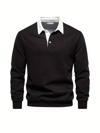Erkek Retro Renk Bloklu Pamuklu Gömlek Yaka Sweatshirt