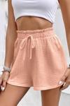 %100 pamuk müslin kumaştan üretilen bu kadın şort, hafif ve nefes alabilen yapısıyla yaz aylarının vazgeçilmezi olacak. Beli bağcıklı tasarımı sayesinde vücuda kolayca uyum sağlar, cepsiz oluşuyla daha sade ve zarif bir görünüm sunar.