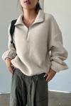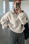 Ghassy Co. Kadın Ultra Isı Peluş Sherpa Oversize Yarım Metal Fermuar Lastik Ayarlı Polar Sweatshirt