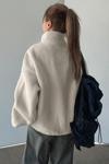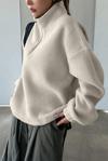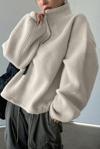 Kadın Ultra Isı Peluş Sherpa Oversize Yarım Metal Fermuar Lastik Ayarlı Polar Sweatshirt