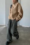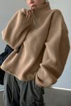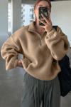 Ghassy Co. Kadın Ultra Isı Peluş Sherpa Oversize Yarım Metal Fermuar Lastik Ayarlı Polar Sweatshirt