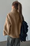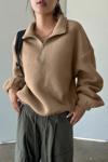 Kadın Ultra Isı Peluş Sherpa Oversize Yarım Metal Fermuar Lastik Ayarlı Polar Sweatshirt