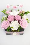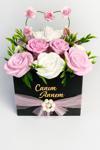ARANJMAN ÖLÇÜLER : 17.5x17.5x18.5 cm Ahşap saksı içerisinde 8 adet gül,4 adet minik gül ve 1 adet melek figürlü kokulu taş bulunmaktadır.