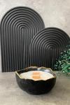 Gia Design El Yapımı Dekoratif Asimetrik Siyah Kapta Ahşap Fitil Kokulu Mum