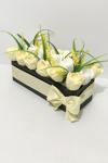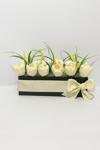 Ölçüler :27x12x12 cm saksı içerisinde 12 adet kokulutaş sarı lale ve 6 adet beyaz lale bulunmaktadır.