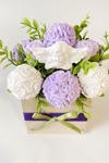 ARANJMAN ÖLÇÜLER :15x15x16cm Ahşap saksı içerisinde 6 adet top gül ve 1 adet melek figürlü kokulu taş bulunmaktadır.