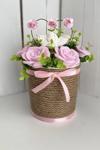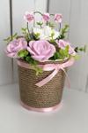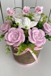 Saksı içerisinde 8 adet açık gül ve 1 adet melek figürlü kokulu taş bulunmaktadır..Ürün içerisindeki yeşilliklerde dönemsel olarak ufak farklılıklar olabilmektedir.