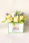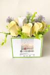 *17 cm Ahşap saksı içerisinde5 adet büyük gül, 4 adet küçük gül kokulu taş bulunmaktadır.