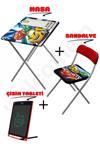 Giffy Cars Katlanabilir Çocuk Ders Çalışma Masa Sandalyesi Ve Çizim Tableti Set