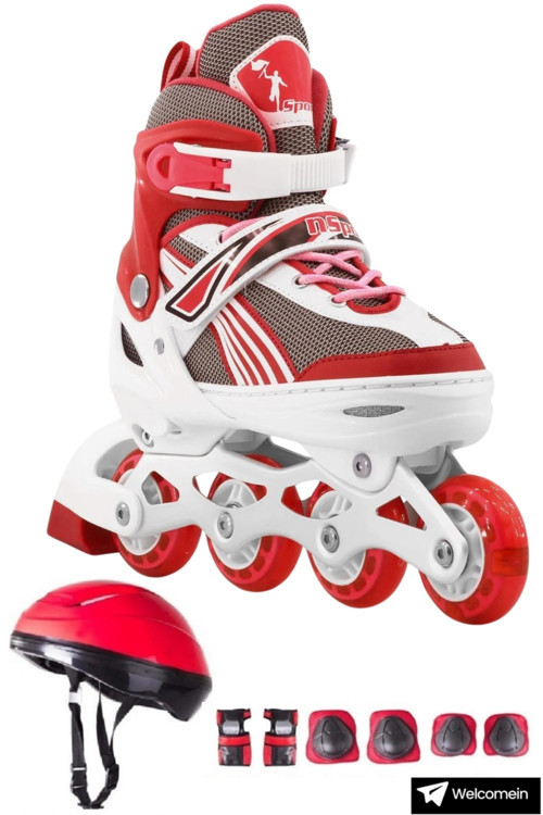 Kırmızı Işıklı Ayarlanabilir Silikon Teker Metal Alıştırma Pateni Kask Dizlik Dirseklik Set
