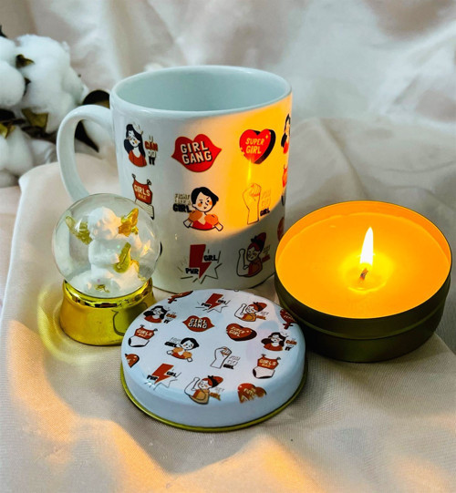 Girl Gang Tasarımlı kupa Mum Ve Altınyaldızlı Kar Küresi Hediye Seti