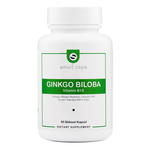 •Smart Caps Ginkgo Biloba, 1 Kapsülde, 90mg Ginkgo Biloba ekstresi ve 100 μg metilkobalamin formunda B12 bulunmaktadır.