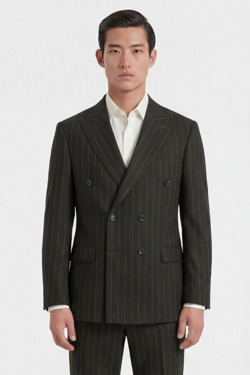 Giotelli Lacivert Slim Fit Sivri Yaka Çizgili Kruvaze Takım Elbise