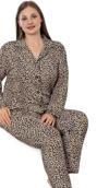 Giovanna Gömlek Yaka Büyük Beden Leopar Kadın Pijama Takımı, ev giyiminde hem rahatlığı hem de şıklığı arayan kadınlar için özel olarak tasarlandı. 3XL – 6XL arası geniş beden aralığı ile her vücut tipine uyum sağlayan bu takım, yumuşak dokulu kumaşı sayesinde cildinizde narin ve konforlu bir his bırakır.