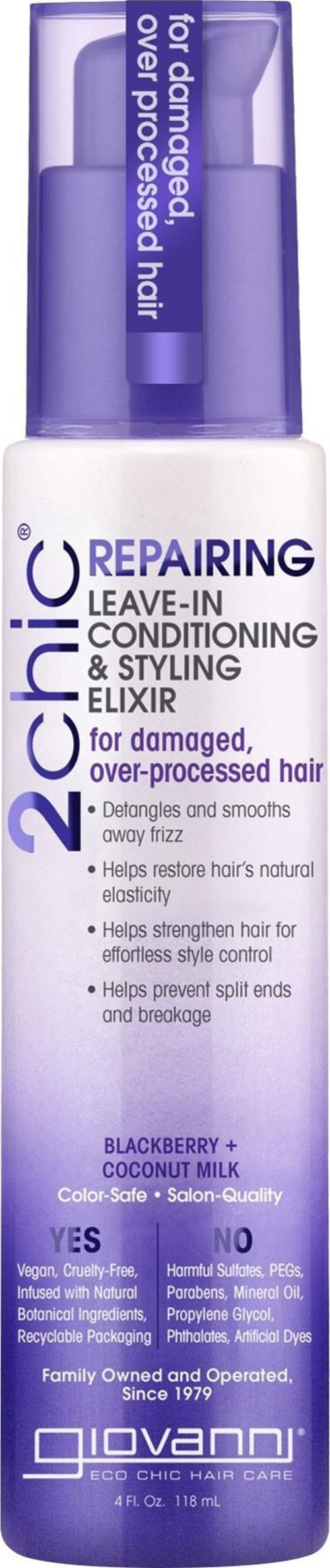 2chic®’in amacı… onarmak ve canlandırmak. Giovanni® 2chic® Durulanmayan Saç Bakım ve Şekillendirici İksir ile saçlarınızı güçlendirin. Bu bakım iksiri, taze böğürtlen ve Hindistan cevizi sütü içeren özel İkili Onarıcı Kompleksi ile saçları besleyerek nem ve koruma sağlar, saçı yıpranmaya karşı korur. Kuruluk veya zor şekil alan saçlar geride kalır; saçlarınız artık kusursuz ve pürüzsüz görünecek.