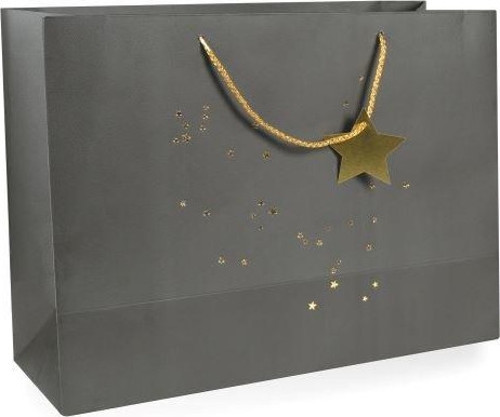Lüks kağıt zemin üzerine altın tmetalize yıldız detayları ve sallanan yıldız aksesuarı ile hediyenizi modern ve şık bir şekilde sunmanızı sağlar Ölçü: 33 × 13,5 × 32 cm