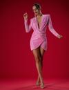 Payet işlemeli detaylarıyla göz alıcı bir görünüm sunan bu mini elbise, her anınıza şıklık katmak için idealdir.