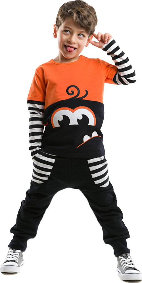 Düşük ağ kesimli, paçası lastikli, cepleri çizgili, pamuklu kumaştan eşofman altı. Takımın tamamlayıcısı, üzeri aplikeli, kolları 2 farklı kumaş ile tasarlanmış eşofman üstü.