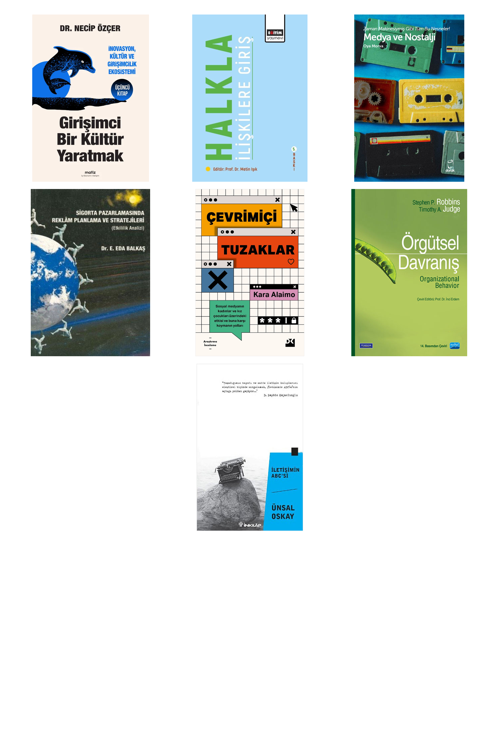 Girişimci Bir Kültür Yaratmak - Halkla İlişkilere Giriş - Medya ve Nostalji - Sigorta Pazarlamasında Reklam Planlama ve Stratejileri - Çevrimiçi Tuzaklar - Örgütsel Davranış - İletişimin ABC'si