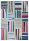 Halinet Girit Kahverengi Çizgili Yün Modern Desenli Yün Hav Toz Vermez Leke Tutmayan Salon Yolluk Mutfak El Dokuma Halı