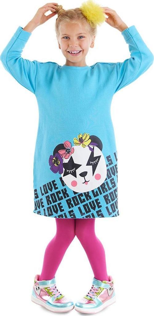 Üzeri panda baskılı, uzun kollu kız çocuk mavi elbise. %100 pamukludur. Tüm MSHB&G ürünleri Çocuk Güvenlik Kuralları'na uygun üretilmektedir. Çocuğunuzun tenine bir zarar gelmemesi için tüm ürünler, iğne kırıklarını tespit edebilen metal dedektörlerinden geçirilmektedir.