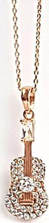Gitar Figürlü Gümüş Üzerine Rose altın kaplama zirkon taşlı kolye